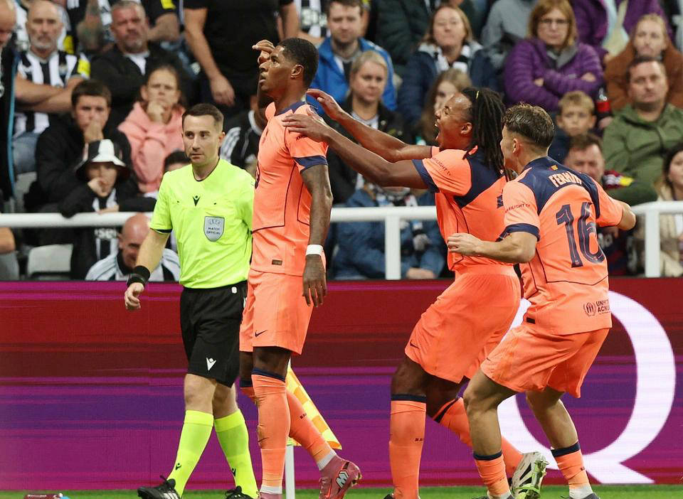 第58分钟,拉什福德接到队友孔德的传球头槌得手,打破了对手波普的防线,完成了自己在巴萨正式比赛中的首个进球。随后的第67分钟,他再次展现绝佳状态,远距离怒射命中,让波普毫无还手之力。